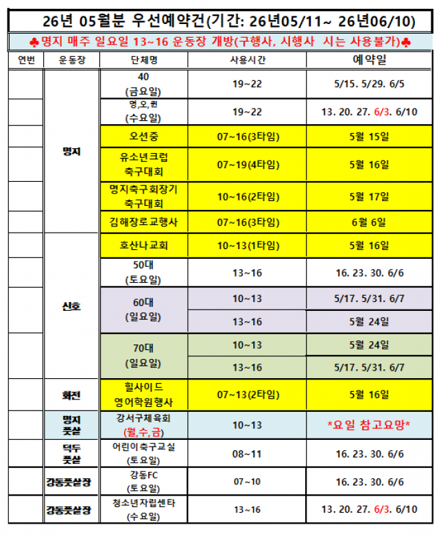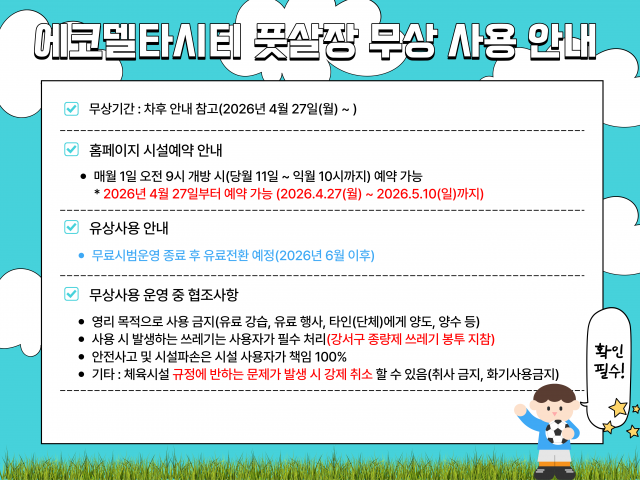 부산광역시 강서구 체육시설(인조잔디운동장) 관리 근로자 채용 공고