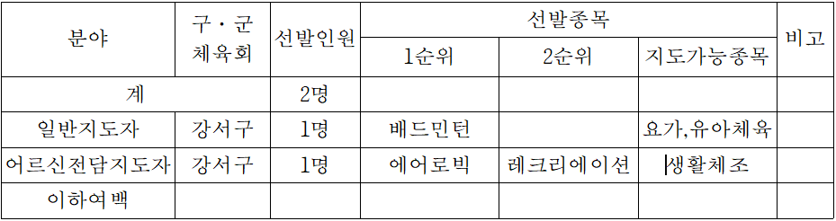 부산광역시강서구체육회 생활체육지도자 채용 최종 합격자 공고