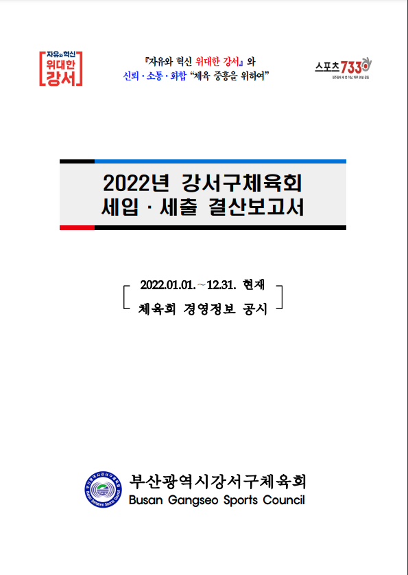 ※ 2022년 부산광역시강서구체육회 세입⦁세출 결산보고서 올려드립니다.
