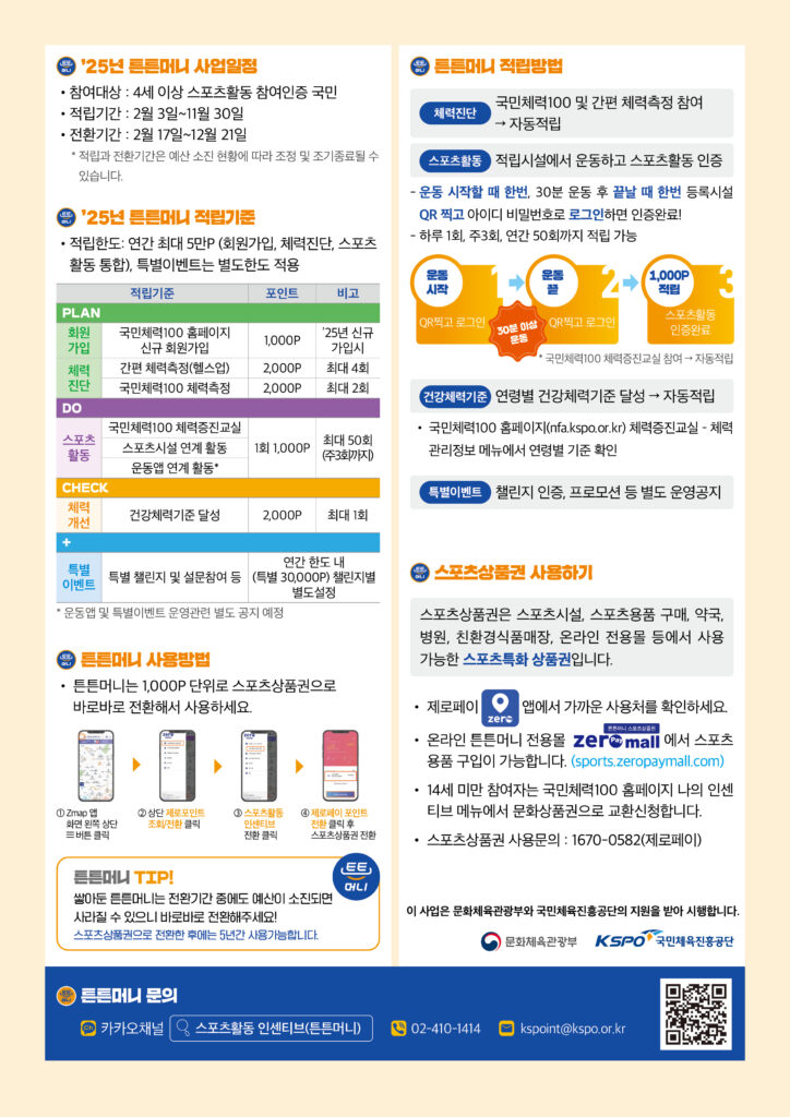 ◾ 문 의 : 카카오채널(스포츠활동 인센티브(튼튼머니)) ☎️02-410-1414 ????kspoint@kspo.or.kr