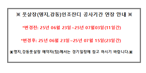 명지,강동풋살장 인조잔디 교체기간 연장안내